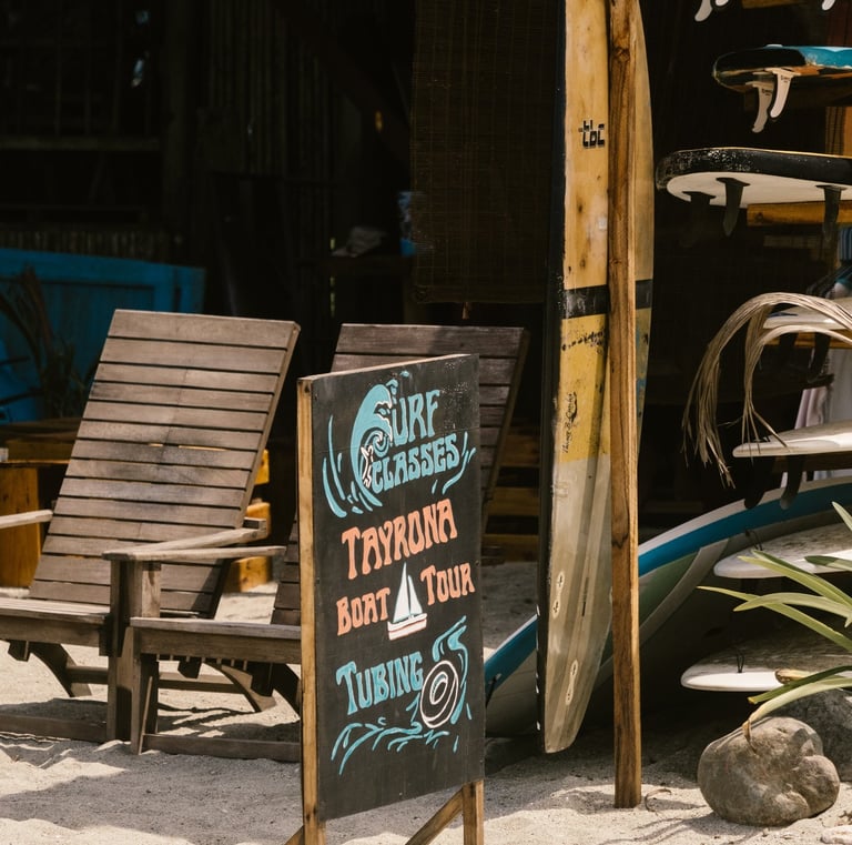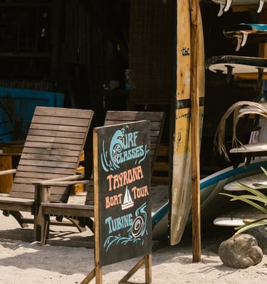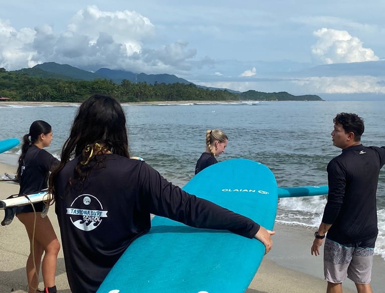 Clases de surf cerca del Parque Tayrona, en español o inglés.